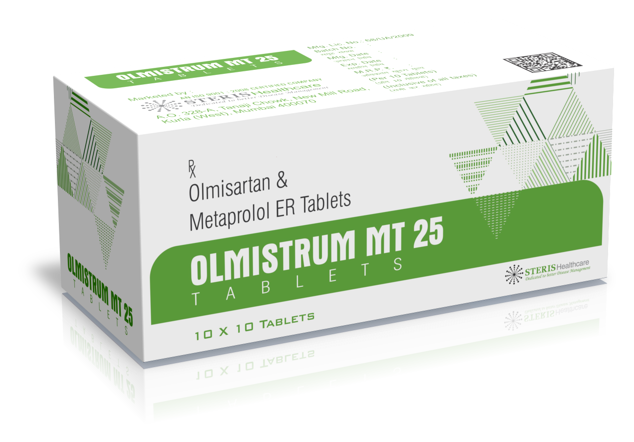 OLMISTRUM MT 25 Olmesartan (40mg), Metaprolol (25mg) Olmesartan (40mg) and Metoprolol (25mg) are combined in OLMISTRUM MT 25, a medication designed to manage hypertension and heart-related conditions. Olmesartan, an angiotensin II receptor blocker (ARB), helps dilate blood vessels, reducing blood pressure. Metoprolol, a beta-blocker, slows heart rate and lowers blood pressure, aiding in heart health. This combination is effective in controlling high blood pressure, reducing the risk of heart attacks, strokes, and kidney problems. OLMISTRUM MT 25 is taken orally, usually once daily, with or without food, as directed by a healthcare professional. Common side effects may include dizziness, fatigue, and low blood pressure. It's crucial to inform your doctor about any pre-existing conditions or medications to avoid interactions. Consult your healthcare provider for personalized dosage and usage instructions. OLMISTRUM MT 25 offers a convenient way to manage hypertension and support heart function.For further information: Email: info@sterispharma.com / contact@sterispharma.com Call/WhatsApp: 7877551268, 7849827488 Buy Now: https://www.sterisonline.com/product/olmistrum-mt-25-133348