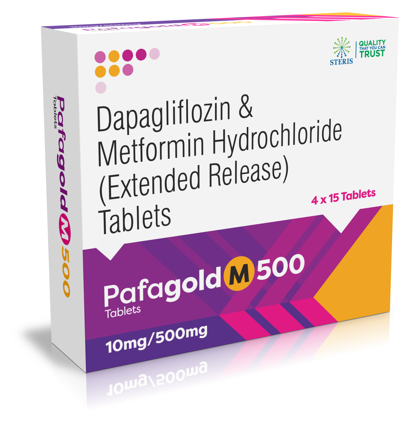 PAFAGOLD M 500 Dapaflozin 10 mg + Metformin SR 500 mg Introduction to PAFAGOLD M 500 PAFAGOLD M 500 is a combination medication that includes Dapagliflozin 10mg and Metformin Hydrochloride Sustained Release (SR) 500mg. This medication is primarily used for the management of type 2 diabetes mellitus. By combining the complementary mechanisms of Dapagliflozin and Metformin, PAFAGOLD M 500 offers comprehensive glycemic control, helping patients manage their blood sugar levels effectively. What are Dapagliflozin and Metformin? Overview of Dapagliflozin Dapagliflozin is an SGLT2 (sodium-glucose co-transporter-2) inhibitor that works by preventing the kidneys from reabsorbing glucose back into the blood, which allows glucose to be excreted in the urine. This helps lower blood sugar levels. Dapagliflozin also offers additional benefits such as weight loss and cardiovascular protection. Overview of Metformin Metformin is a biguanide that helps lower blood sugar levels by improving the body's sensitivity to insulin and reducing the amount of glucose produced by the liver. It also enhances peripheral glucose uptake and utilization. The sustained-release formulation ensures a prolonged effect throughout the day. Benefits of PAFAGOLD M 500 Effective Blood Sugar Management Postprandial and Fasting Glucose Control: Dapagliflozin helps regulate fasting glucose levels by promoting glucose excretion through urine, while Metformin assists in lowering both fasting and postprandial (after-meal) glucose levels by promoting insulin sensitivity and reducing hepatic glucose production. Comprehensive Glycemic Control: The combination of these two medications provides a dual mechanism of action that targets multiple pathways of glucose regulation, offering comprehensive blood sugar management. Support for Diabetes Management Diet and Exercise Adjunct: PAFAGOLD M 500 is an excellent adjunct to diet and exercise, helping patients achieve better blood sugar control when lifestyle modifications alone are insufficient. Reduced Risk of Complications: By maintaining more stable blood sugar levels, PAFAGOLD M 500 can help reduce the risk of long-term complications associated with diabetes, such as cardiovascular disease, neuropathy, and retinopathy. Additional Health Benefits Weight Management: Dapagliflozin has been associated with weight loss due to the excretion of glucose and calories in the urine. Cardiovascular Protection: SGLT2 inhibitors like Dapagliflozin have been shown to provide cardiovascular benefits, reducing the risk of heart failure and other cardiovascular events in diabetic patients. How to Use PAFAGOLD M 500 Dosage and Administration Recommended Dosage: The typical dosage of PAFAGOLD M 500 is one tablet taken once daily. Your healthcare provider may adjust the dosage based on your individual response and blood sugar levels. Administration: Take the tablet with meals to reduce the risk of gastrointestinal discomfort and enhance the effectiveness of Metformin. Swallow the tablet whole with a full glass of water. Guidelines for Optimal Use Consistent Use: For best results, take PAFAGOLD M 500 regularly as prescribed by your healthcare provider. Monitor Blood Sugar Levels: Regularly check your blood sugar levels to ensure the medication is effectively controlling your diabetes. Adjustments to your treatment plan may be necessary based on these readings. For further information: EMAIL: info@sterispharma.com / contact@sterispharma.com CALL/WHATSAPP: 7877551268, 7849827488 Order Now https://www.sterisonline.com/product/pafagold-m-500-134322