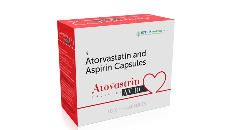 ATOVASTRIN AV 10 Atorvastatin (10mg), Aspirin (75mg) ATOVASTRIN AV 10 combines Atorvastatin (10mg) and Aspirin (75mg) for cardiovascular prevention. It reduces cholesterol and prevents clot formation, crucial for heart health and stroke prevention. Always follow your doctor’s advice. For further information: EMAIL: info@sterispharma.com / contact@sterispharma.com CALL/WHATSAPP: 7877551268, 7849827488 Order NOW