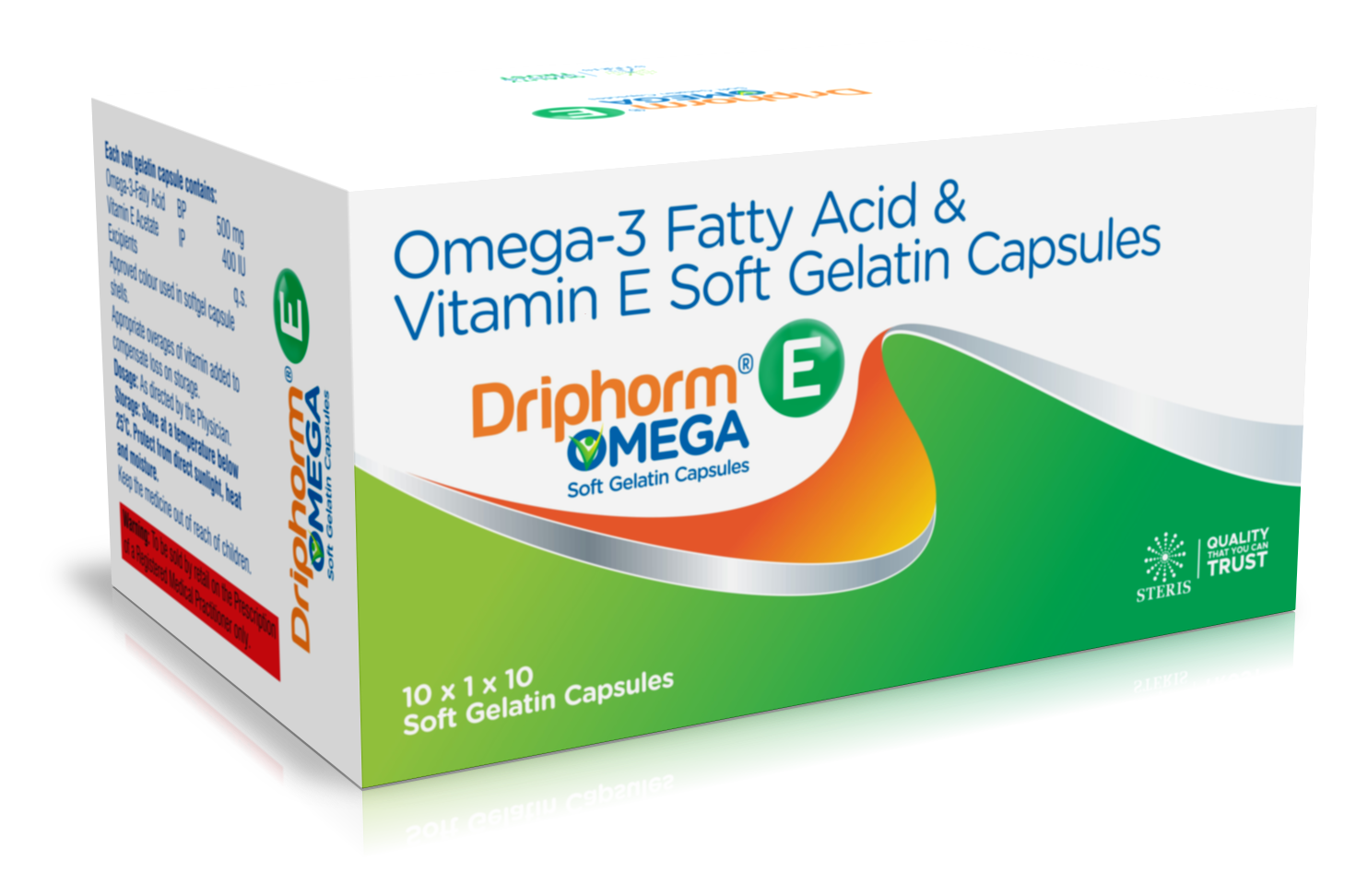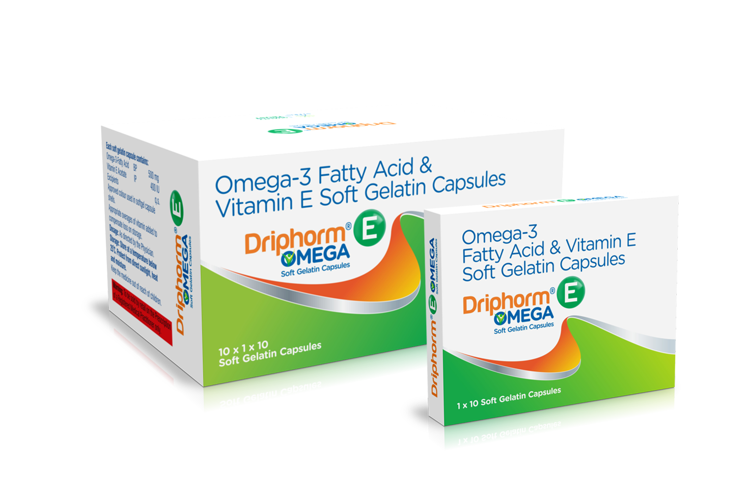 DRIPHORM E OMEGA is a premium formulation that combines the scientifically proven benefits of Omega-3 Fatty Acids with the antioxidant power of Vitamin E. These softgel capsules are designed to enhance overall wellness by delivering essential nutrients that play a crucial role in heart health, cognitive function, eye protection, and immune support. Omega-3s, especially EPA (eicosapentaenoic acid) and DHA (docosahexaenoic acid), are vital fatty acids the body cannot produce on its own. Vitamin E adds an extra layer of cellular protection by fighting oxidative stress and supporting skin health. Ideal for adults seeking improved cardiovascular function, better mental clarity, or enhanced physical well-being, DRIPHORM E OMEGA provides a balanced and effective daily supplementation. Uses DRIPHORM E OMEGA Softgel Capsules are used for: Maintaining healthy heart function and cholesterol levels Enhancing brain health, memory, and focus Supporting eye health and protecting vision Reducing inflammation and improving joint mobility Strengthening immunity and overall resilience Supporting skin nourishment and delaying signs of aging Managing nutritional deficiencies related to inadequate Omega-3 intake These uses make the capsules suitable for people with busy lifestyles, older adults, and individuals seeking comprehensive nutritional support. Benefits 1. Promotes Heart Health Omega-3 fatty acids help maintain normal triglyceride levels and support healthy blood circulation. Their anti-inflammatory properties contribute to improved cardiovascular performance and long-term heart protection. 2. Enhances Brain and Cognitive Function DHA is essential for optimal brain structure and performance. Regular intake supports mental clarity, sharper focus, and improved memory function—beneficial for students, working professionals, and aging individuals. 3. Strengthens Eye Health Omega-3s help protect the retina and support overall visual acuity. Consistent use may reduce eye strain and dryness, especially for individuals with prolonged screen exposure. 4. Boosts Skin, Hair & Nail Health Vitamin E offers powerful antioxidant support that helps slow down skin aging, improve skin elasticity, and protect against environmental damage. Combined with Omega-3s, it nourishes skin from within, reduces dryness, and promotes healthy hair growth. 5. Reduces Inflammation & Supports Joint Mobility Omega-3 fatty acids are known for reducing inflammation, helping relieve joint stiffness and improving flexibility. This makes DRIPHORM E OMEGA ideal for athletes, fitness enthusiasts, and individuals with joint discomfort. 6. Antioxidant Protection & Immunity Boost Vitamin E protects cells from oxidative damage and enhances immune response. With regular intake, the body becomes more resilient to stress and environmental toxins. Dosage Take DRIPHORM E OMEGA as advised by your physician or healthcare professional. A common recommendation is one softgel capsule once or twice daily, preferably with meals to improve absorption. Do not exceed the recommended dosage unless directed by a healthcare provider. Side Effects Although generally safe and well tolerated, some individuals may experience: Mild digestive discomfort Fishy burps or aftertaste Nausea Loose stools Headache These side effects are usually temporary. If symptoms persist or worsen, discontinue use and consult your doctor. Precautions and Warning Pregnant or breastfeeding women should seek medical advice before use. People with fish allergies should avoid this product or consult a doctor. Individuals with bleeding disorders, or those taking blood thinners, should use the product under medical supervision. Keep out of reach of children. Store in a cool, dry place away from moisture and direct sunlight. Do not use if the seal is broken or the product has expired. Consult your physician before use if you have underlying medical conditions or are taking long-term medications. Conclusion DRIPHORM E OMEGA Omega-3 Fatty Acid and Vitamin E Softgel Capsules offer a complete wellness solution by supporting heart health, boosting brain function, protecting eyesight, and enhancing immunity. With its powerful antioxidant and anti-inflammatory benefits, this supplement is ideal for anyone seeking improved vitality, balanced nutrition, and long-term health support. Make DRIPHORM E OMEGA a part of your daily routine to nourish your body, elevate your energy, and strengthen your overall well-being.