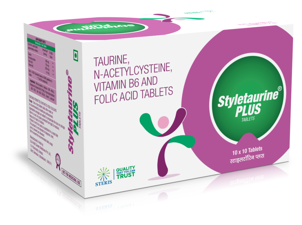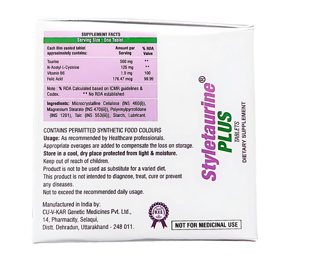 Taurine (500 mg), N-Acetyl-L-Cysteine (125 mg), Vitamin B6 (1.9 mcg) Folic Acid (176.47 mcg)
